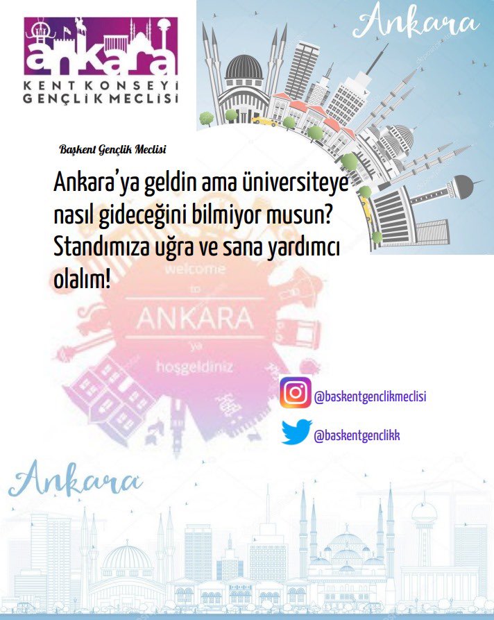 “Üniversite Ankara’da okunur” etkinliğimiz bünyesinde Ankara’ya yeni gelen genç arkadaşlarımızı AŞTİ’de karşılamak için *27 Eylül – 6 Ekim* tarihleri arasında kurulacak stantta sabah, öğlen ve akşam saatlerinde görev almak isteyen arkadaşlarımız dm yoluyla bizlere ulaşabilirler.